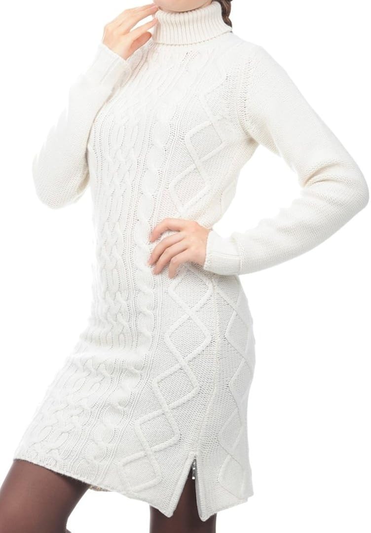 Balldiri 100 Cashmere Kaschmir Damen Kleid Rollkragen Zopfmuster Exklusiv Ecru At Amazon Women S Clothing Store