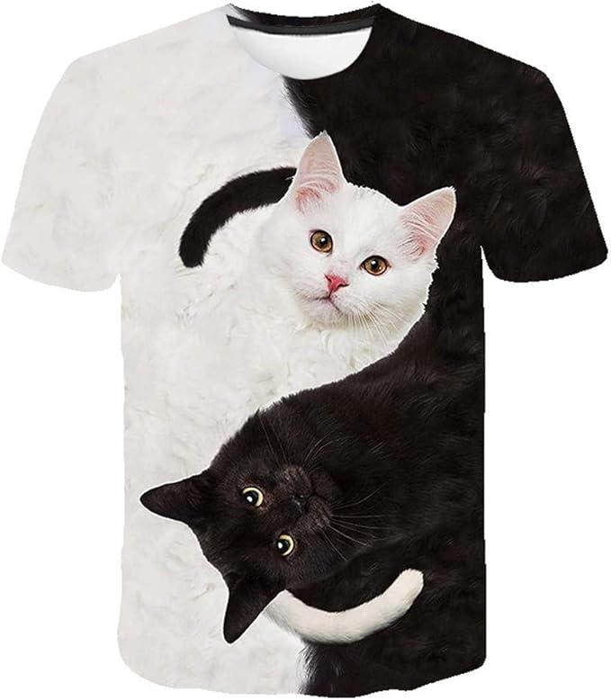 Kinder T Shirts Casual 3d Schwarze Und Weisse Katze Drucken Tops Short Sleeve O Neck Oberteile Fur Madchen Junge Amazon De Bekleidung