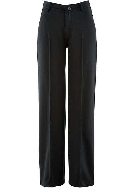 Weite Jersey Hose Mit Bugelfalte Und Teilgummibund Schwarz
