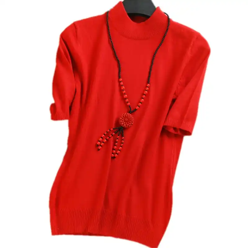 Perforirane Stacionaren Infracherven Rollkragenpullover Kurzarm Damen Abcaburkina Org