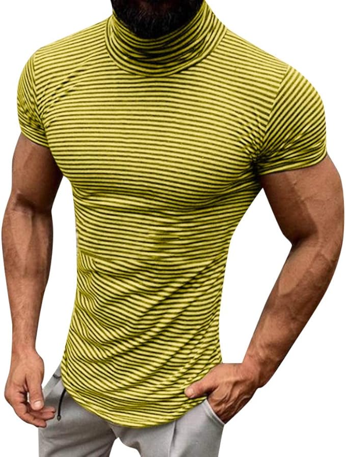 Amphia Gestreiftes Rollkragenpullover Fur Herren Kurzarm T Shirt Mode Manner Sommer Streifen Choker Fit Kurzarm T Shirt Top Bluse Amazon De Bekleidung