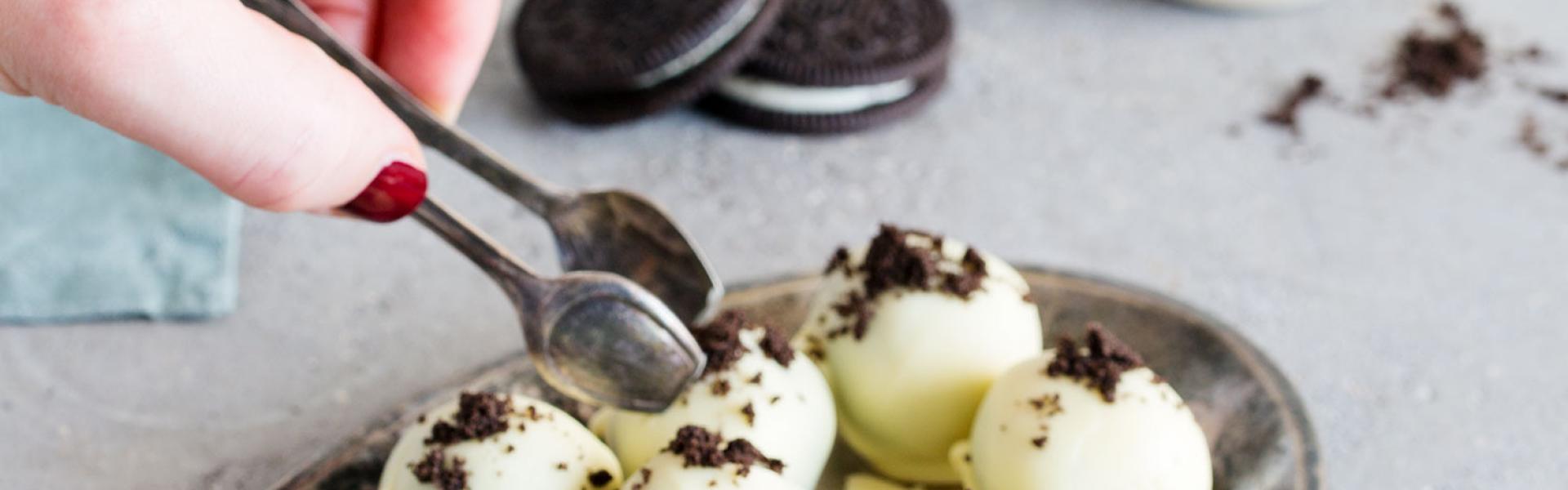 Oreo Kekse als Pralinen schmecken noch besser und dazu noch selbst gemacht!. Hier kommen 5 Rezepte für OreoTrüffel, Mandelsplitter & Co!. Die OreoFrischkäseMasse zu gleichmäßigen Kugeln formen Schritt 4/8 Die fertigen Kugeln für mindestens eine Stunde in den Kühlschrank stellen Schritt 5/8 Die Kuvertüre in einem Wasserbad schmelzen Schritt 6/8 Die Pralinen vorsichtig in der flüssigen Kuvertüre schwenken, bis sie vollständig mit Schokolade überzogen sind Schritt 7/8.