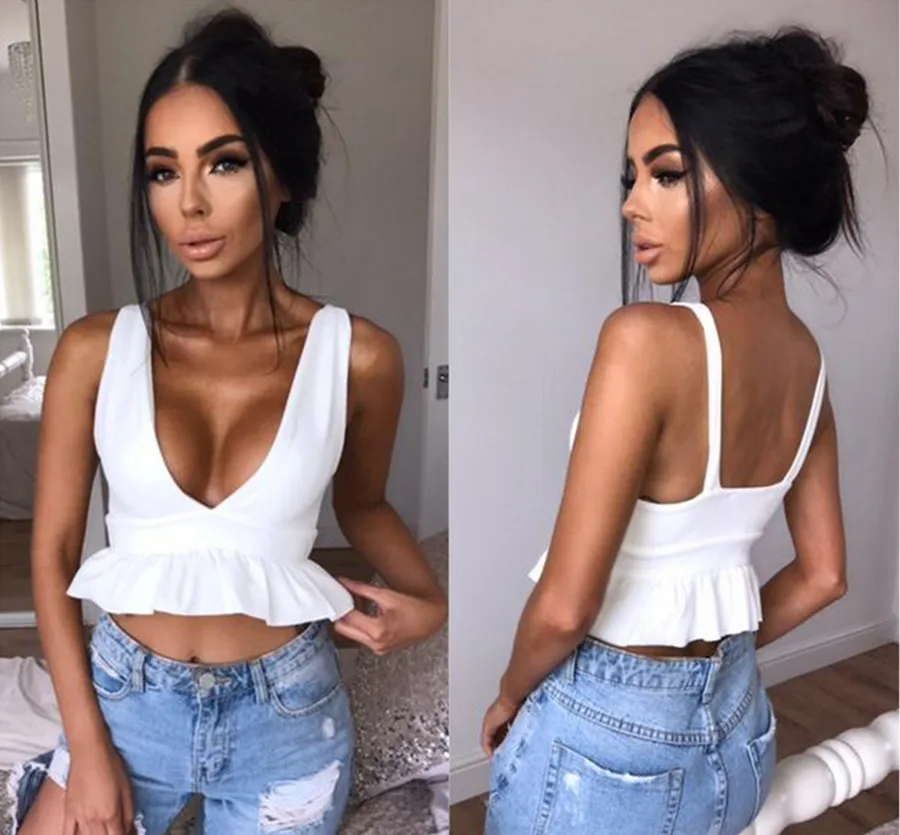 Superdirectorio Kaufen Billig Bjhow Weiss Sleeveless Ruschen Backless Tank Top 17 Frauen Crop Tops Sommer Strand Freizeitkleidung Sexy Kurzes T Shirt V Ausschnitt Femme Preise Online