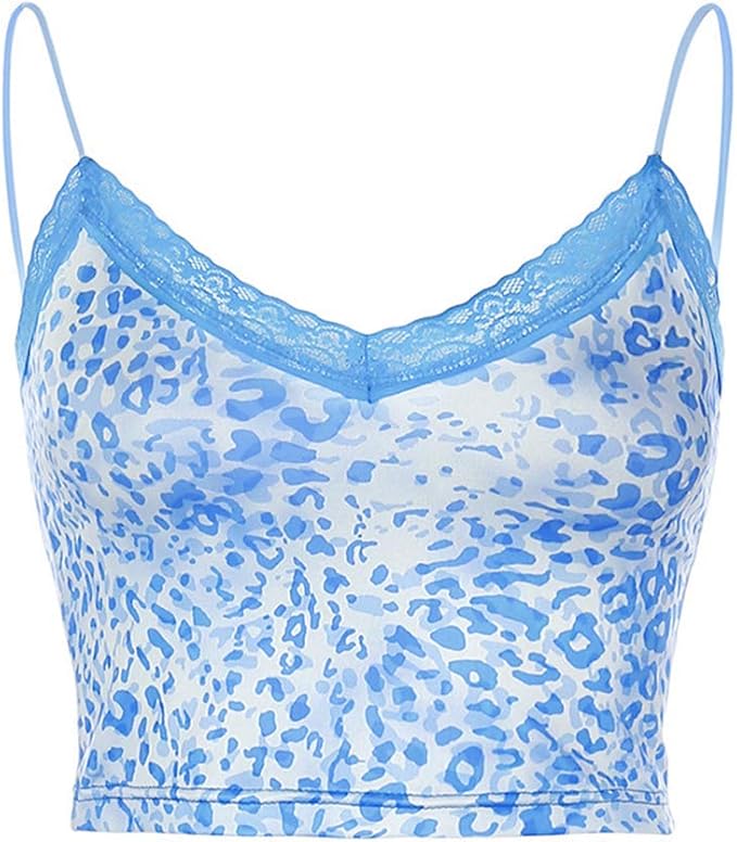 Fugift Fashion Damen Kurzes Top Damen Spaghettitrager Slim Crop Top Leopard Gedruckt Spitze Patchwork Camisole Exy Tiefer V Ausschnitt Ruckenfrei Sommer Sling Weste Clubwear Amazon De Bekleidung