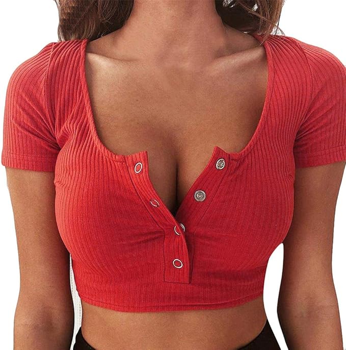 Yowablo Hemd Frauen Einfarbig V Ausschnitt Gerippt Kurzarm Kurzes Top Amazon De Bekleidung