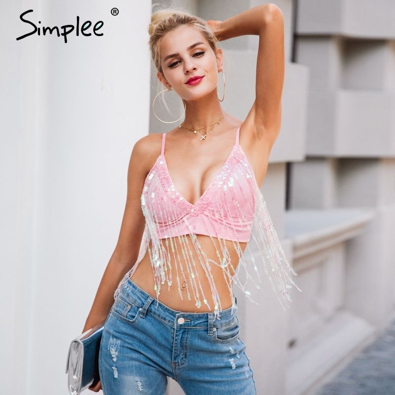 Grosshandel Simplee V Ausschnitt Ruckenfreies Leibchen Tank Top Sexy Quasten Pailletten Kurzes Oberteil Frauen Tops Sexy Party Kurz Rosa Cami Pullover S915 Von Ruiqi02 13 96 Auf De Dhgate Com Dhgate