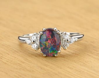 Natural Opal Ring 18k White Gold Genuine Diamonds Rare Coober Pedy Mine Black Opal Triplet Fashion Anni Black Opal Ring Australian Opal Ring White Gold Rings