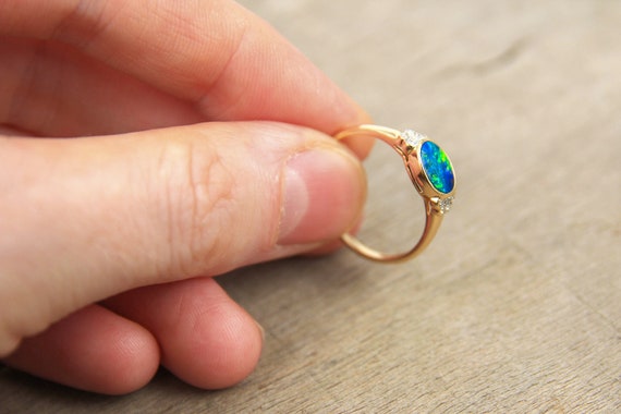Schwarzer Opal Ring Blau Opal Diamant Ring 14 K Gelbgold Etsy