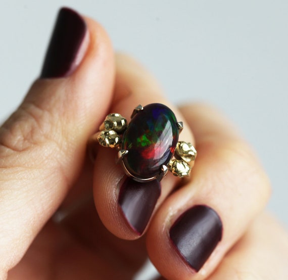 Solidopal Ring Opal Ring Band Schwarzer Opal Ring Ring Etsy