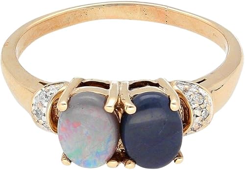 Damen Ring 9 Karat 375 Gelbgold Naturlicher Opal Und Schwarzer Opal Mit Diamant Akzenten Grosse T Luxurioser Damenring Amazon De Schmuck