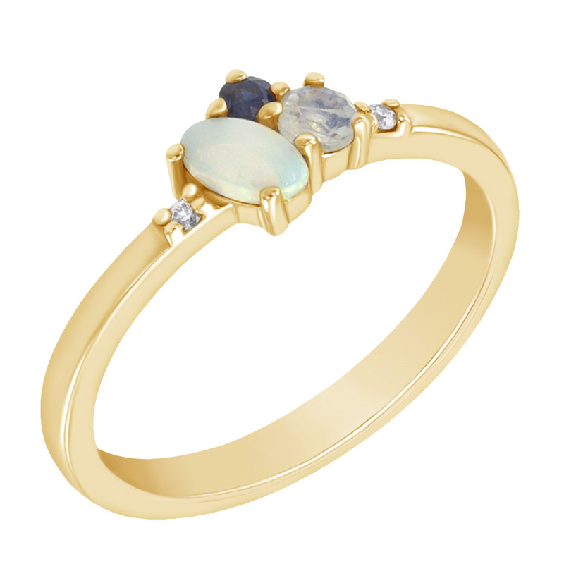 Goldener Cluster Ring Mit Opal Saphir Mondstein Und Diamanten Elsa Eppi De