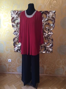 Damen Abendmode Bluse Und Hose 2 Teiler Chiffon Ubergrosse Rot Schwarz Gr 48 Ebay