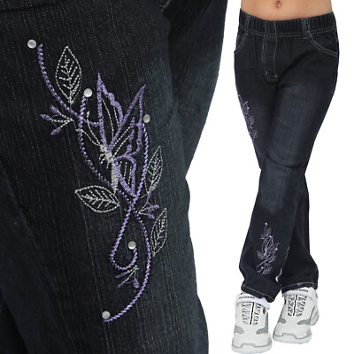 Madchen Jeans Schmetterling Stickerei Strass Steine Kinder Baumwolle Blatter D Y Ebay