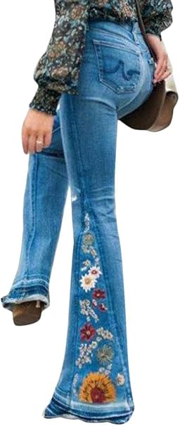 Minetom Schlaghosen Damen Jeans Hosen Stretch Bootcut Denim Jeanshose Lange Retro Stickerei Hohe Taille Breites Bein Flared Pants Amazon De Bekleidung