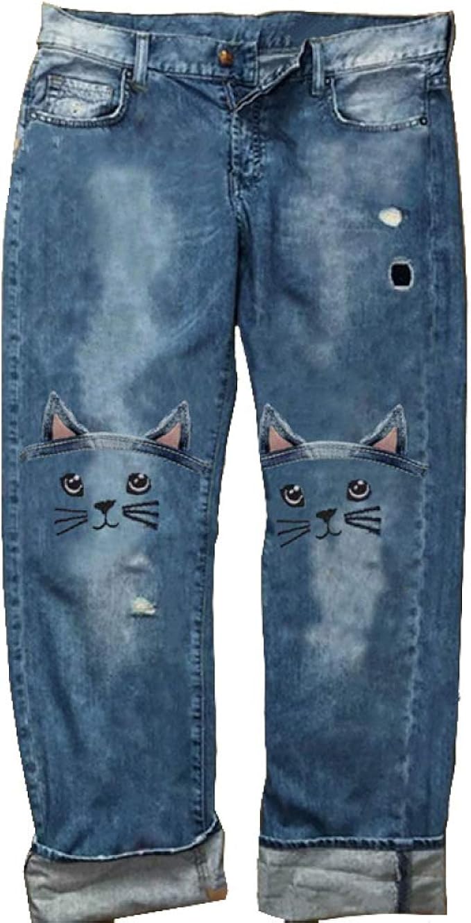 Ladies Summer Jeans Niedliche Mode Stickerei Drucken Lose Lassig Sexy Mittlere Taille Gerade Bein Hose Mit Taschen Amazon De Bekleidung