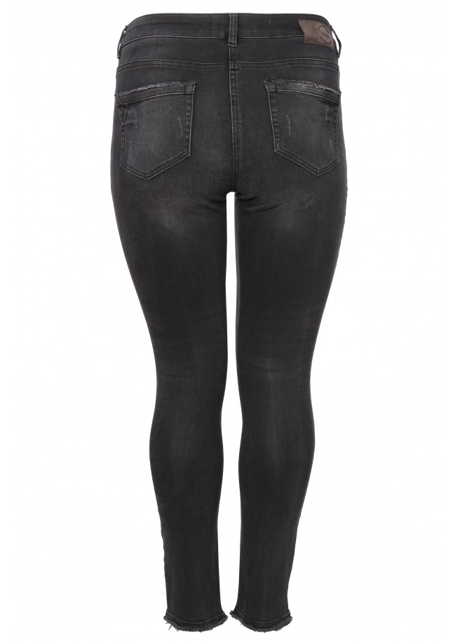 SkinnyFitJeans in verwaschener Optik mit Rissen und Stickerei am Bein FivePocketStil Reißverschluss und Knopf vorne.
