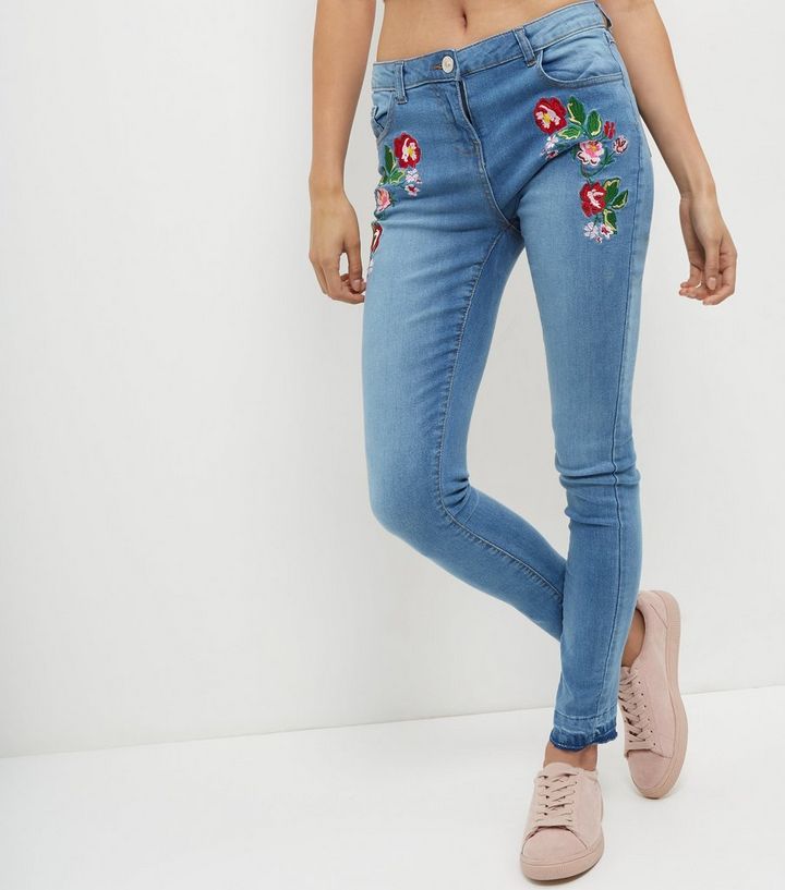 Parisian Blaue Skinny Jeans Mit Stickerei New Look