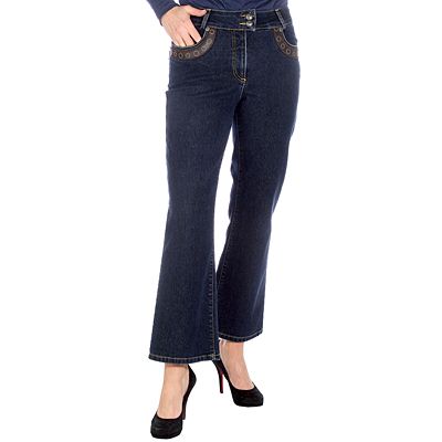 D C Exquisit Jeans 5 Pocket Tru Waist Bund Lederapplikation Stickerei Qvc De