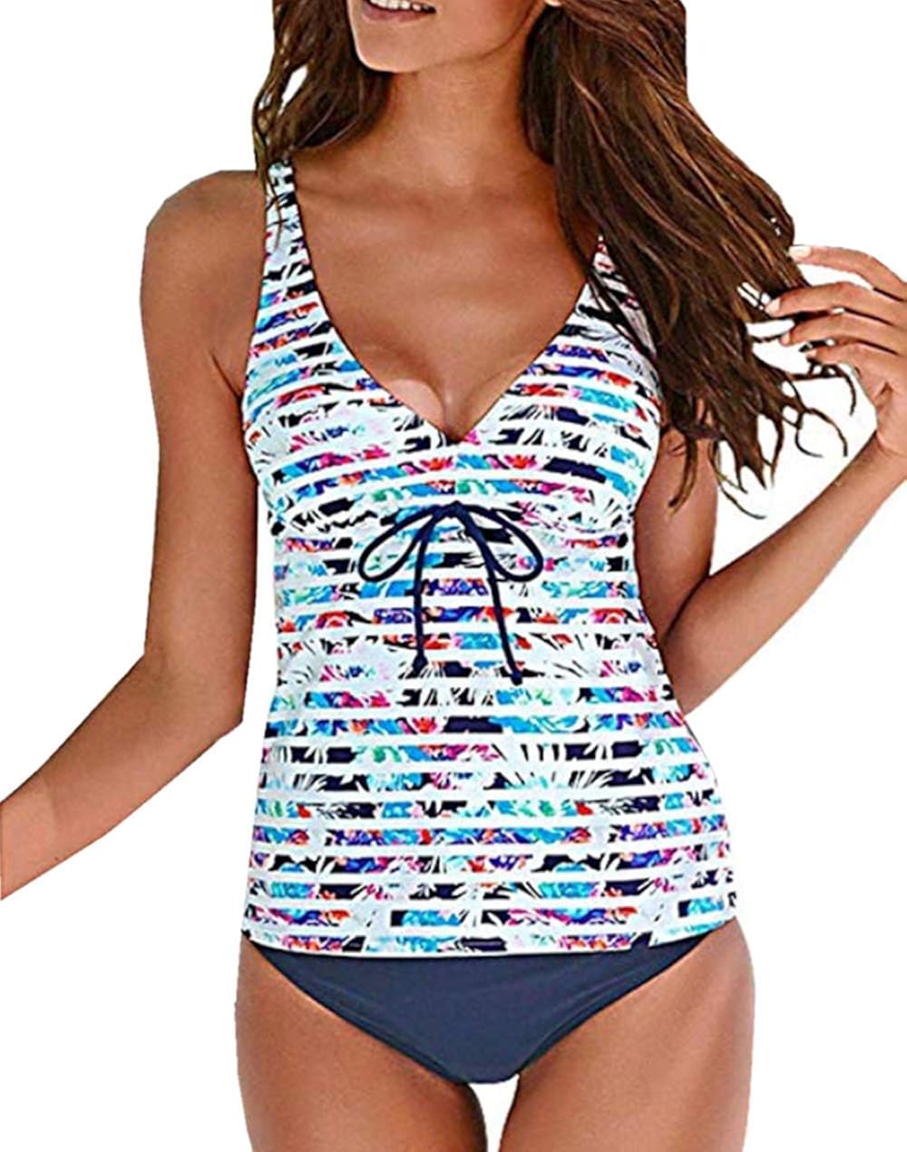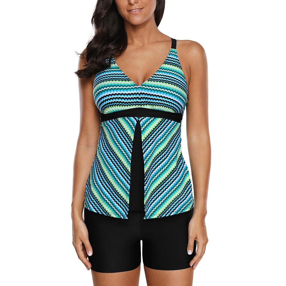 Asskdan Damen Tankini Set Bauchweg Gepolstert Zweiteilig Gedruckt Bademode Grosse Grossen
