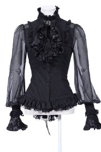 Weisse Lolita Bluse Baumwolle Langarm Hochkragen Ruschen Lolita Top Lolitashow Com
