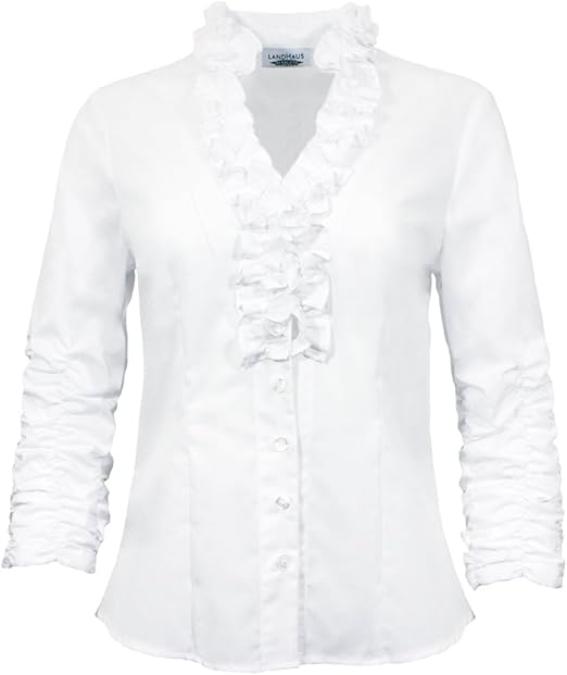 Hiebaum Damen Langarm Trachten Bluse Eva Mit Ruschen Weiss Gr 42 Amazon De Bekleidung