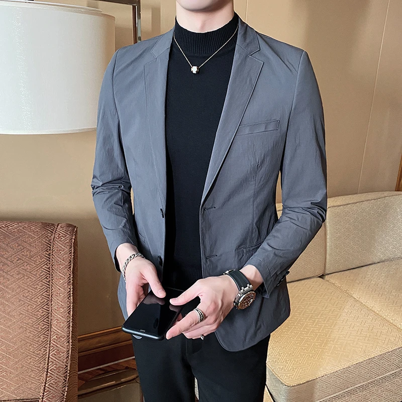 Fashion Spring Mens Blazer Jacket Korean Slim Fit Men Blazer Long Sleeve Streetwear Blazers Men Suits Black Gray Plus Size Blazers Aliexpress