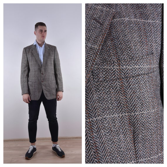 Harringbone Men Blazer Checkered Blazer Long Sleeve Button Etsy
