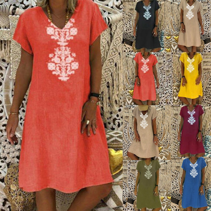 Shinehua Damen Tunika Kleid Boho Bohemian Kleid Vintage Kleid Lose Casual Swing Kleid Kurzarm Tshirt Kleid
