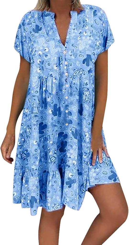 Sommerkleid Damen Kurzarm Elegantes V Ausschnitt Knopfleiste Short Beach Freizeitkleid Mit Gurtel Minikleid Mit Blumenmuster V Ausschnitt Kurzen Armeln Boho Kleid Swing Kleid Amazon De Bekleidung