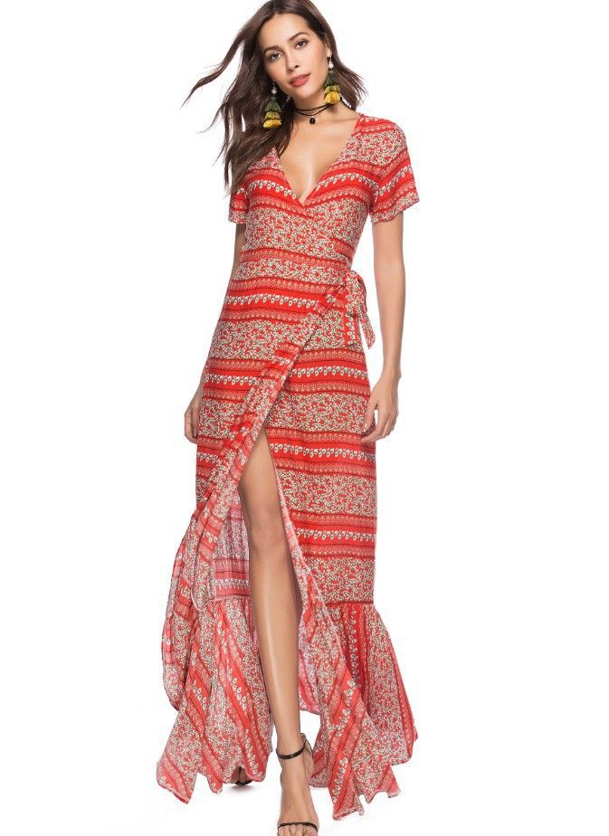 Grosshandel Frauen Sommerkleid V Ausschnitt Cape Kurzarm Casual Kleider Boho Beach Vinatge Blumendruck Kleid Split Lange Kleider Von Isabella0616 27 63 Auf De Dhgate Com Dhgate