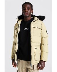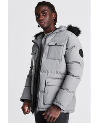 Boohooman Multi Pocket Quilted Parka With Faux Fur Hood In Orange For Men Lyst