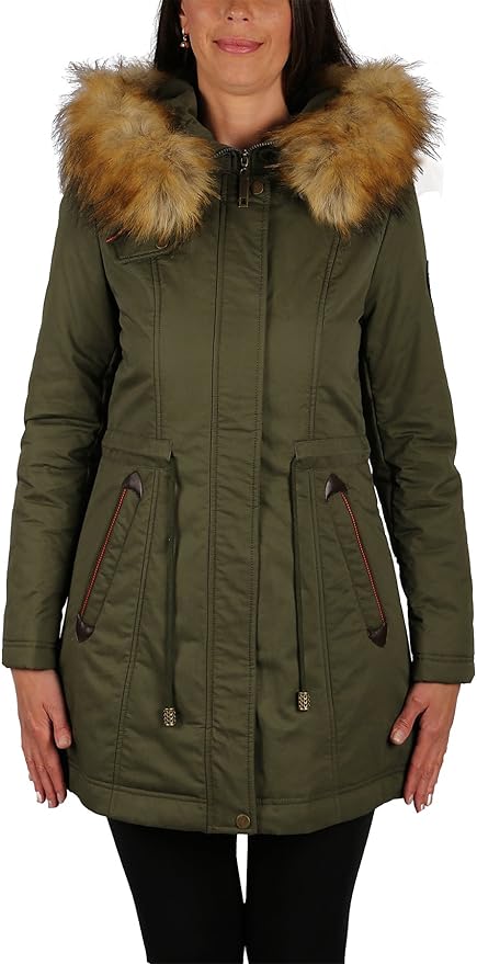 Grimada 7163 Damen Parka Alana Mit Pelzbesatz Kapuze Amazon De Bekleidung