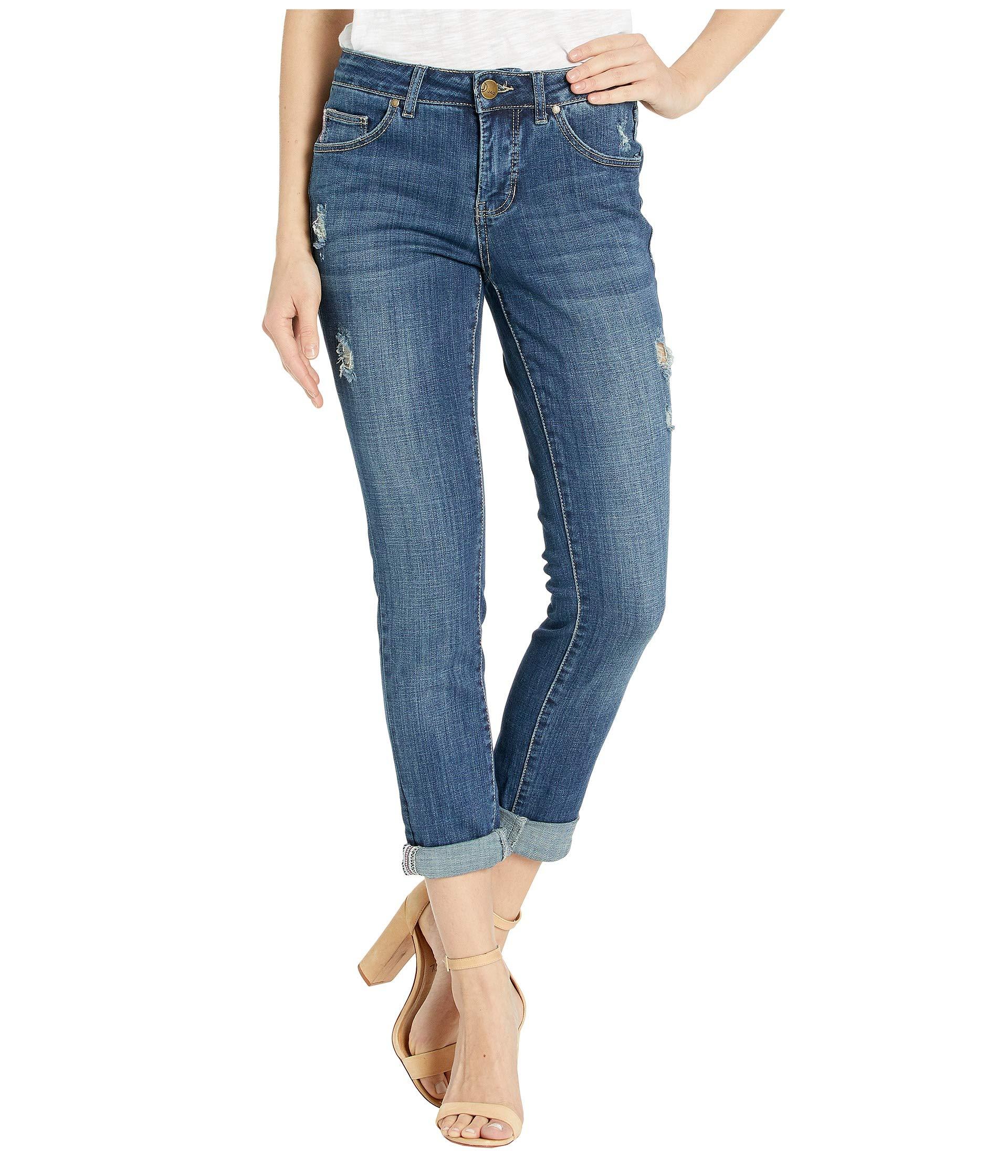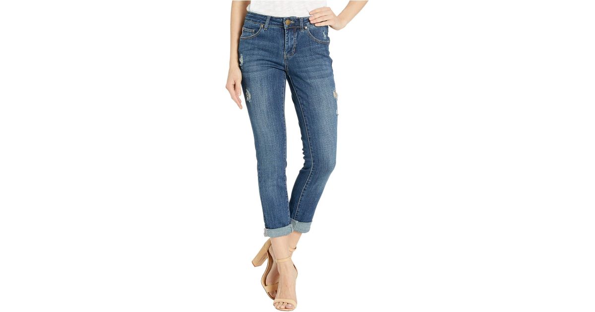 Jag Jeans Carter Girlfriend Crosshatch Denim Jeans In Thorne Blue W Destruction Thorne Blue Women S Jeans Lyst