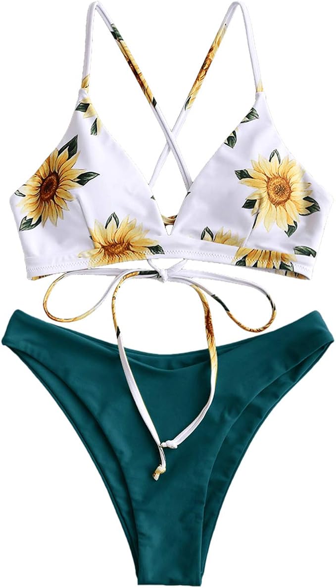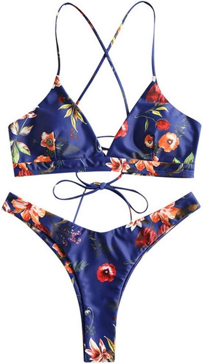 Zaful Damen Gepolsterter Bikini Set Bademode Badeanzug Mit Blumenmuster Schn Rung Zweiteilig Amazon De Bekleidung