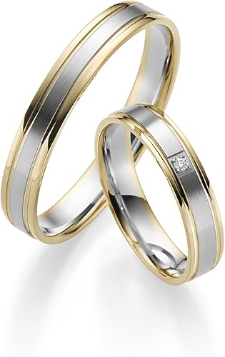Ein Paar Trauringe Eheringe Hochzeitsringe Eismatt Bicolor Mit Steinen