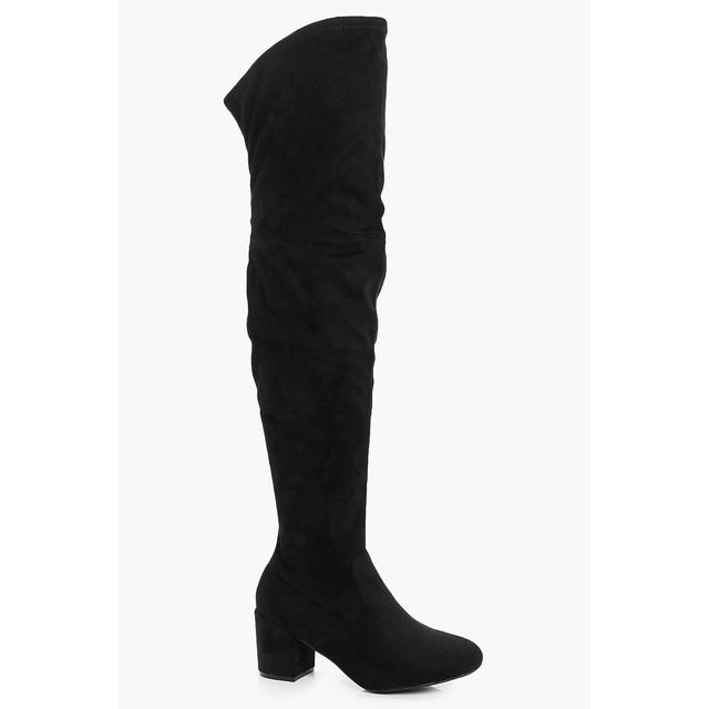 Wide Fit Schwarze Overknee Stiefel In Wildleder Optik Mit Blockabsatz From New Look On 21 Buttons