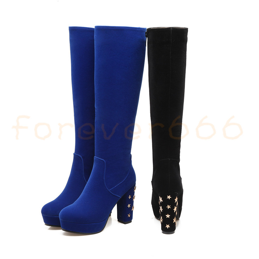 Kleidung Accessoires Damen Wildleder Overknee Kniehohe Stretchstiefel Blockabsatz Stiefel Dunn Passen Dear Co Th