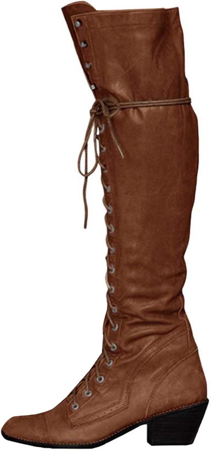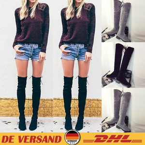 Damen Overknee Booties Flache Blockabsatz Schuhe Schnurboots Winter Stiefel Mode Women S Boots
