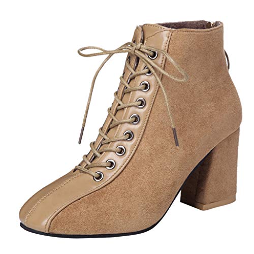 Sexy Fell Plateau Schnurung Blockabsatz Stiefel Stiefelette Damenschuhe Braun Schwarz Apricot