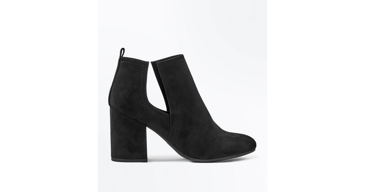 Schwarze Blockabsatz Stiefel Mit Zierausschnitt In Wildleder Optik New Look