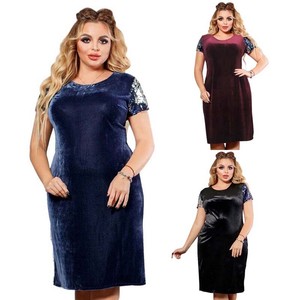 3x Gross Grosse Frauen Pailletten Kleid Sommer Samt Kurzarm Patchwork Kleid E K7x9 Ebay