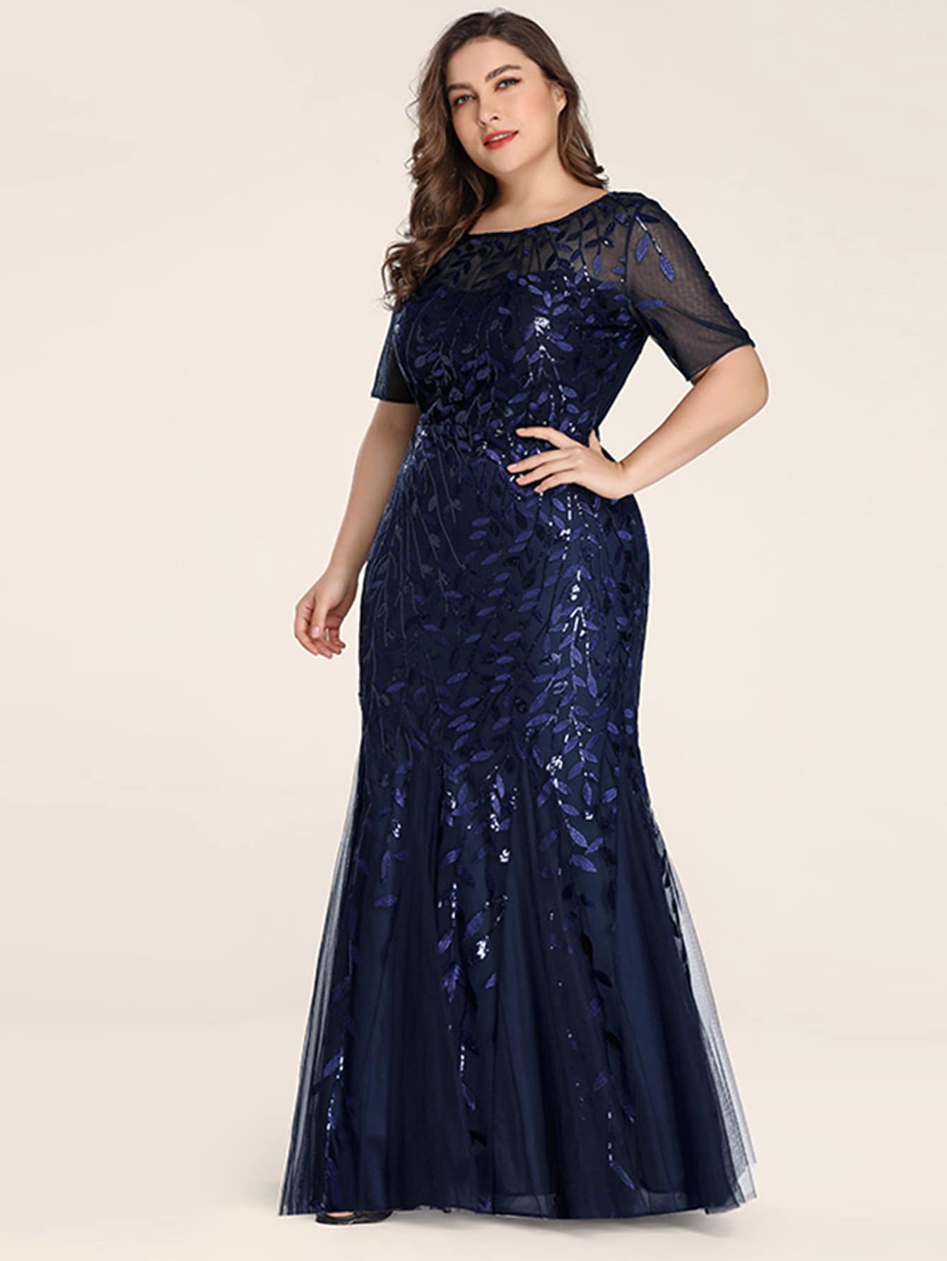 Grosse Grossen Meerjungfrau Kleid Mit Netzstoff Pailletten Und Applikation Aktuelle Trends Gunstig Kaufen Shein Deutschland