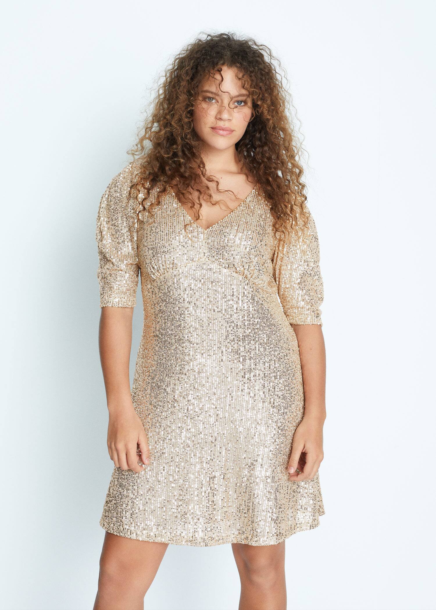Paillettenkleid Mit Ballonarmeln Grosse Grossen Violeta By Mango Deutschland