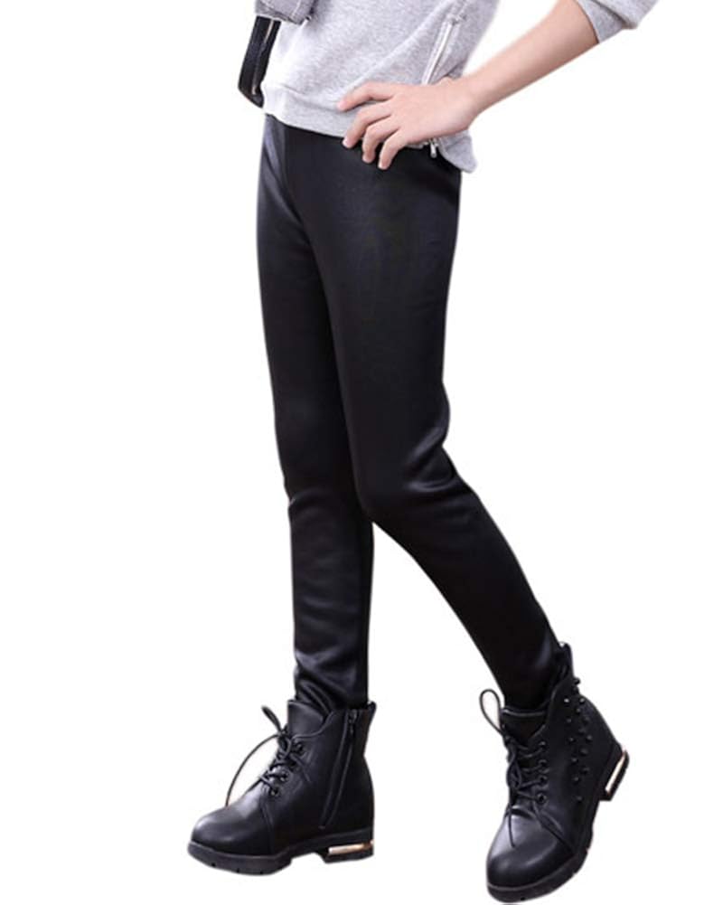 Penggenga Kinder Madchen Leggins Hose Pu Leder Dicke Warme Lange Hose Elastische Taille Madchen Hosen