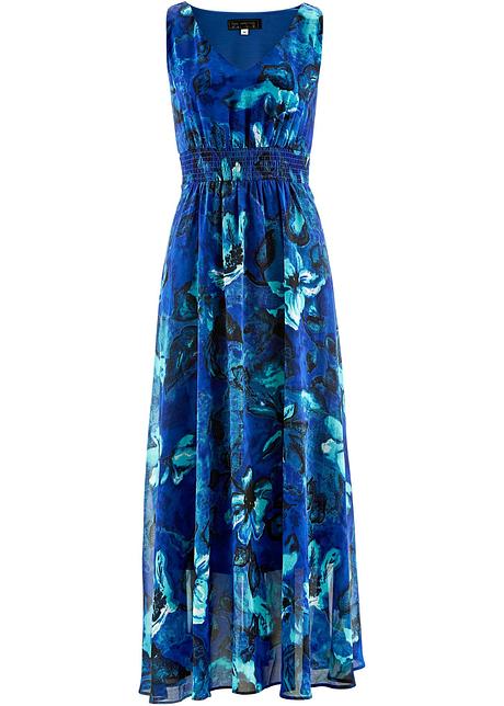 Geschmackvolles Kleid Im Maxi Stil Mit Weitem Rock Blau Bedruckt