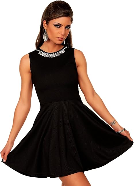 Kleid Partykleid Damen Abendkleid Minikleid Mit Kette Mit Weitem Rock 38 Schwarz Amazon De Bekleidung