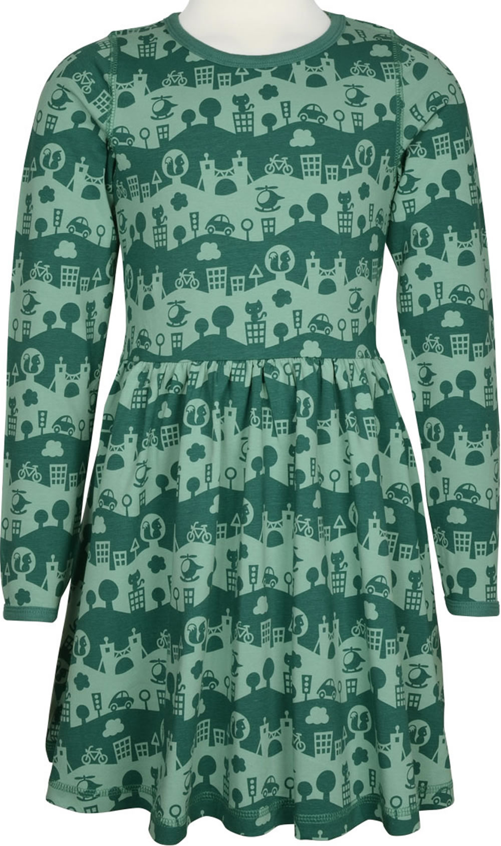 Maxomorra Kleid M Weitem Rock Langarm City Landscape Petrol M360 D3217 Gots Bei Papiton Bestellen