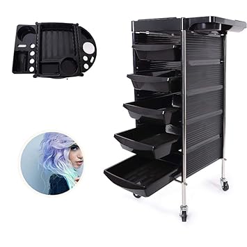 Profi Friseur Salon Trolley Arbeitswagen Auf Rollen Mit 5 Schubladen Mit Fonhalter Schwarz Grosse Kapazitat Green Amazon De Beauty