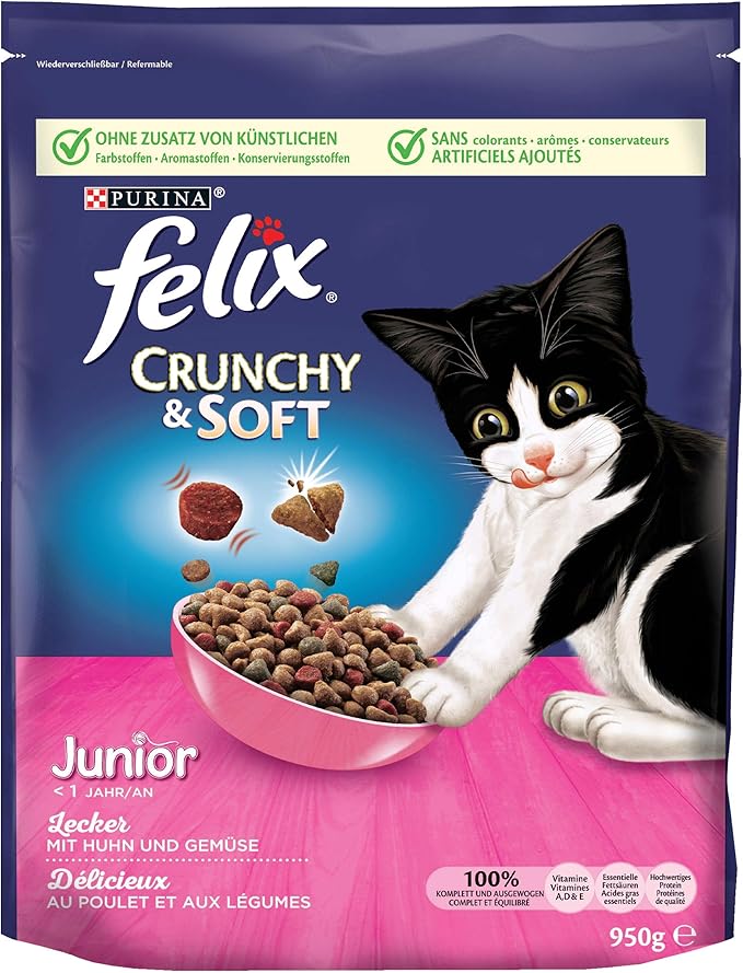 Felix Crunchy Soft Junior Mit Huhn Und Gemusezugabe 950 G Trockenfutter Fur Kitten Gunstig Kaufen
