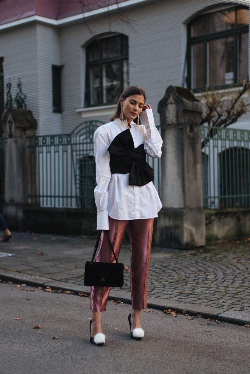Nina Schwichtenberg Silvester Outfit Mit Schleifen Corsagen Top Stoffhose Pom Pom Heels Chanel Timeless Aus T Co Wefj0tfktf